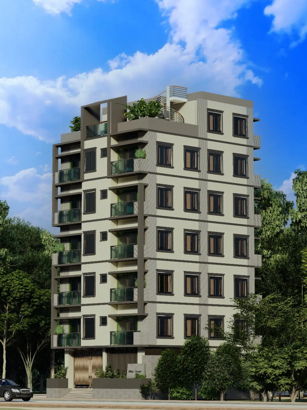 This mid-rise residential building is designed with an earthquake-resistant reinforced concrete frame system. The structural frame consists of vertical columns and horizontal beams, forming a rigid grid that distributes seismic forces evenly throughout the building.
